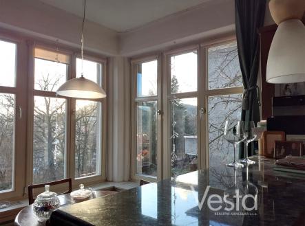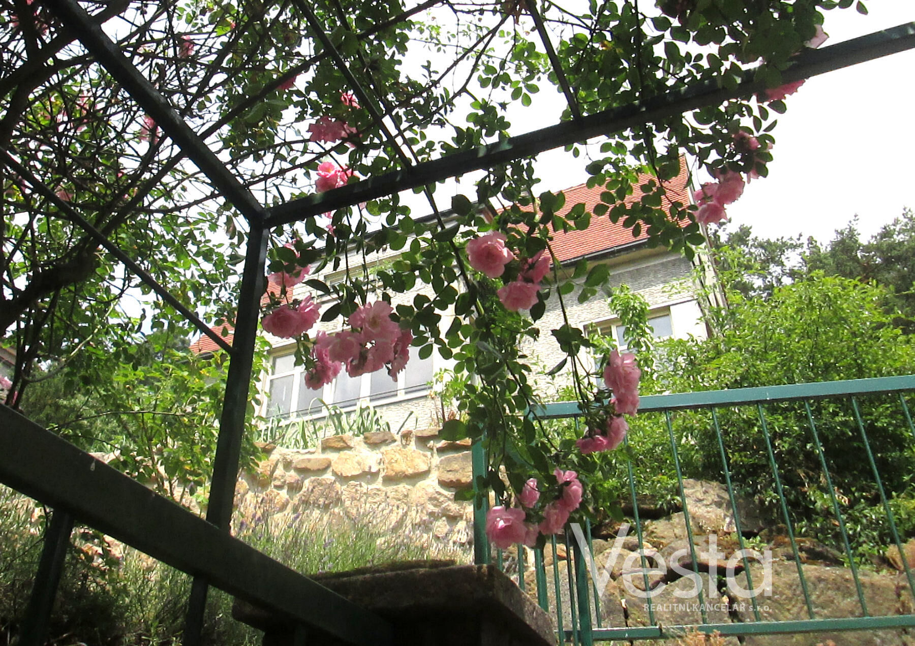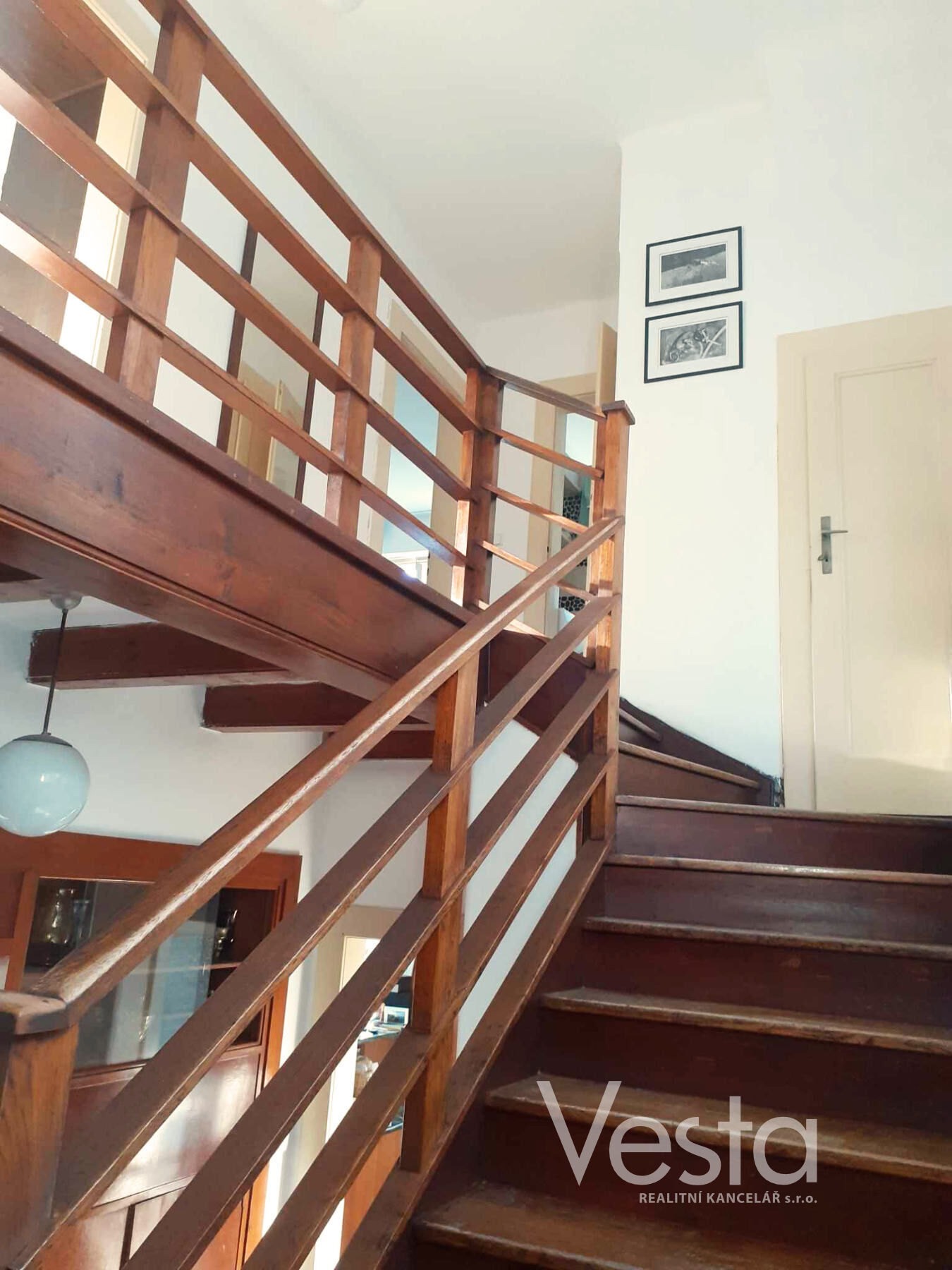 Výjimečná vila se nachází téměř na konci slepé ulice Na Vinici. Z domu se snadno během několika minut dostanete pěšky do centra města, nebo máte-li rádi procházky v přírodě, přímo ze zahrady vstoupíte do rozsáhlého lesoparku na Pastýřské stěně. Každý den se budete těšit úžasnými výhledy na město a jeho okolí. Tento elegantní dům prošel rozsáhlou citlivou rekonstrukcí a je v dobrém technickém stavu. V přízemí je vstupní hala s nádherným dřevěným schodištěm, dále kuchyně s navazující jídelnou, obývacím pokojem a pracovnou, kterou oddělují od obývací části úžasné původní zapuštěné posuvné dveře. Obytné prostory zdobí promyšlené úložné prostory, vestavěné knihovny a parketové podlahy. Po dřevěném schodišti vstupujeme do 1. patra, kde se nachází 4 ložnice, terasa, koupelna a WC. Dům je plně podsklepený, přičemž v polozapuštěném suterénu byla vybudována samostatná bytová jednotka 3+kk s vlastním vchodem ze zahrady, nyní užívána jako kancelář. Dále je zde umístěna kotelna s kondenzačním plynovým kotlem. Příslušenství domu tvoří permakulturní zahrada s okrasným jezírkem. Celková výměra pozemků je 825 m2. Dům je napojený na veřejný rozvod vody, kanalizace, elektřiny a plynu. V případě zájmu lze přikoupit samostatnou řadovou garáž v těsné blízkosti domu.