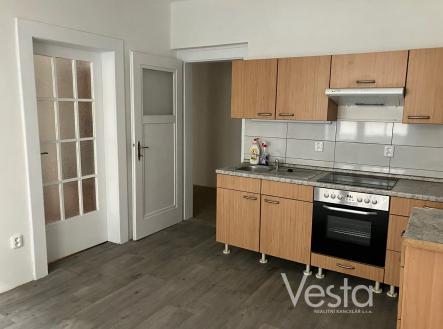 Bytovou jednotku k dlouhodobému pronájmu tvoří prostorná vstupní předsíň, kuchyně s kuchyňskou linkou a vestavěnými spotřebiči, tři obytné pokoje, z nichž jeden s balkónem do zahrady domu, dále koupelna se sprchovým koutem a toaletou a malá komora. Okna jsou plastová. Vytápění bytu a ohřev vody zajišťuje vlastní plynový kotel, v kuchyni pro ohřev vody k dispozici průtokový ohřívač. Cena pronájmu je uvedena bez měsíčních záloh - na dodávku vody, která činní 460 Kč/osoba, osvětlení spol. prostor 10 Kč/osoba. Elektřina a plyn na vlastní účet nájemce.