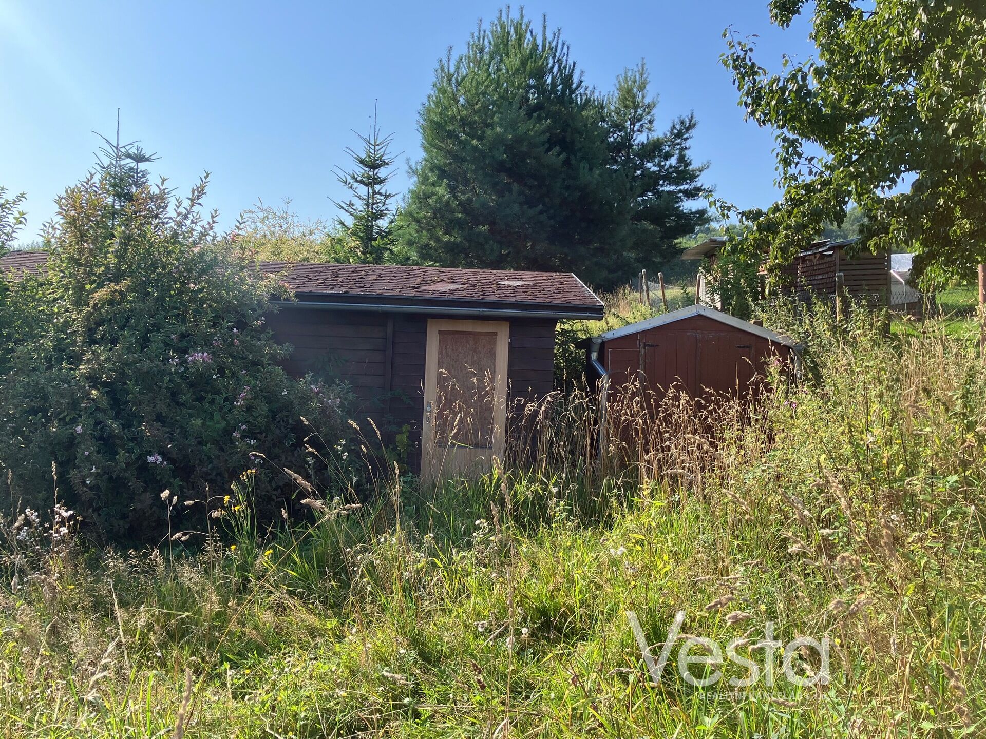 Na pozemku se nachází dřevěná rekreační chata a kůlna na uskladnění zahradního nářadí. Hezké místo s dojezdovou vzdáleností 10 minut do Děčína.