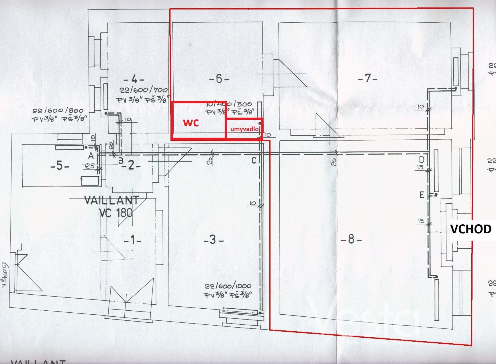 Dispozičně je prostor rozdělen na hlavní centrální místnost – prodejnu se dvěma výlohami, sklad, kancelář a sociální zařízení. Celková výměra prostor je 55 m², vytápění je ústřední plynové, ohřev vody přes průtokový ohřívač.