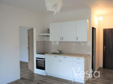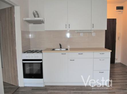 Bytovou jednotku tvoří malá vstupní předsíň, kuchyně s pěknou kuchyňskou linkou a kombinovaným sporákem, ložnice, koupelna se sprchovým koutem a toaletou. Vytápění bytu je ústřední dálkové. Cena pronájmu je uvedena bez měsíčních záloh, které činí cca 1 900 Kč, elektřina a plyn na vlastní účet nájemce.