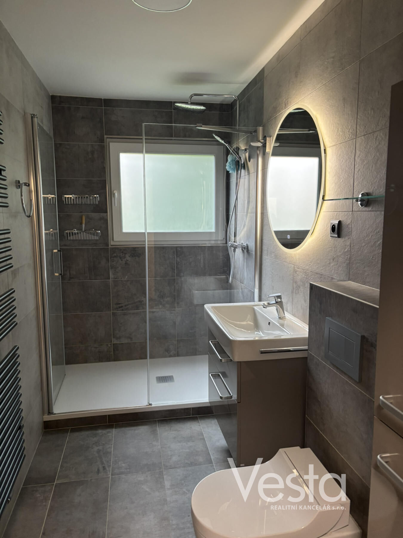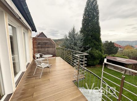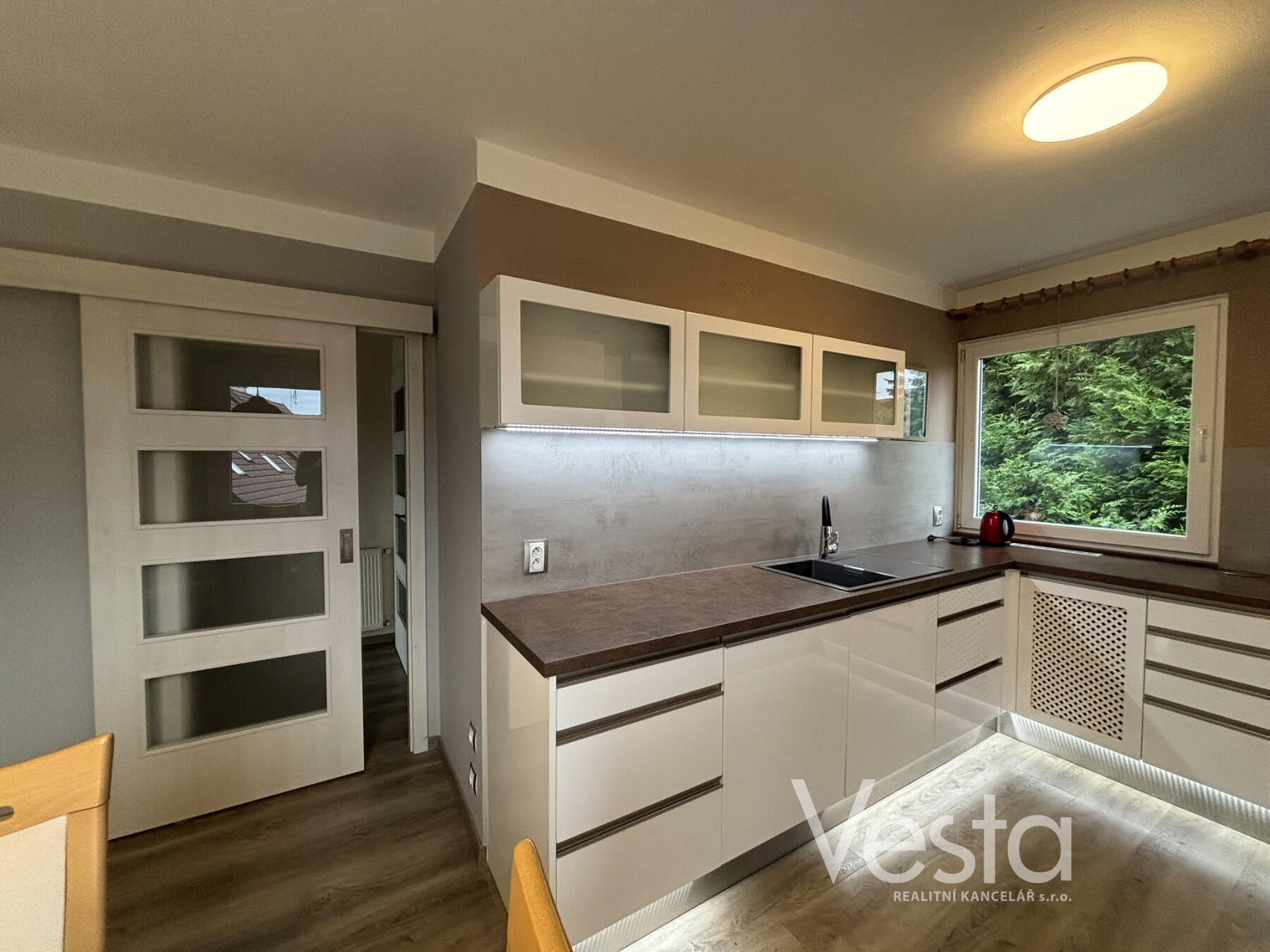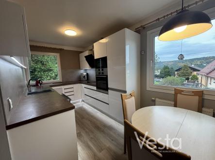 Prostorný byt v osobním vlastnictví po celkové rekonstrukci o podlahové ploše 95 m2 se nachází v 1. patře bytového domu. Byt je po celkové rekonstrukci, nová koupelna, nová kuchyně s vestavěnými spotřebiči a inteligentním osvětlením, nové rozvody elektřiny, podlahové vytápění, rozvody klimatizace, obložkové dveře a nové podlahy. Jednoduchá a hezká dispozice bytu, obývací pokoj s velkou prosklenou stěnou a vstupem na prostornou terasu s výhledem na celý Děčín, dále po schodišti vstup na krásnou zahradu s altánem a grilem. Zastřešené parkovací místo přímo u domu. K bytu náleží praktické příslušenství v přízemí domu sklad a velká společná prádelna. Ústřední vytápění plynovým kotlem nebo tepelným čerpadlem.