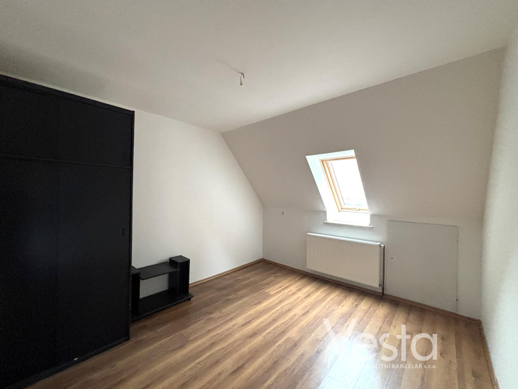 Útulný byt v osobní vlastnictví o podlahové ploše 77 m2 se nachází v podkroví malého bytového domu ve kterém jsou celkem 3 byty. Jednotka je dispozičně rozdělena na chodbu, kuchyň, obývací pokoj a 3 ložnice. Příslušenství bytu tvoří sklad v přízemí domu a velká společná prádelna. Majitelé bytu mohou užívat krásnou zahradu se zahradním altánem a grilem, dále k zastřešené parkovací stání. Byt je vytápěn samostatným plynovým kotlem.