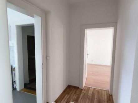 Byt je dispozičně rozdělen na vstupní předsíň, kuchyň s kuchyňskou linkou a kombinovaným sporákem, 2 pokoje, koupelnu se sprchovým koutem a toaletou. U domu je zahrada, která je společná a lze ji využívat. Vytápění a ohřev teplé vody zajišťuje plynový kotel pro celý objekt s vlastními měřáky pro jednotlivé byty. Cena pronájmu je uvedena bez měsíčních záloh, které činí cca 3 500 Kč. Elektřina a plyn na vaření je na vlastní náklady nájemce.