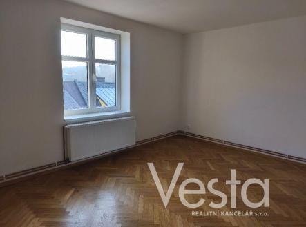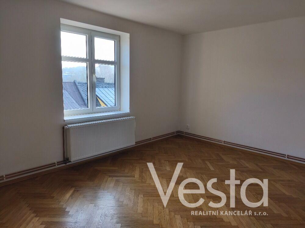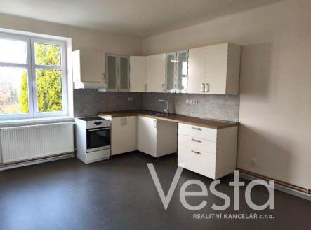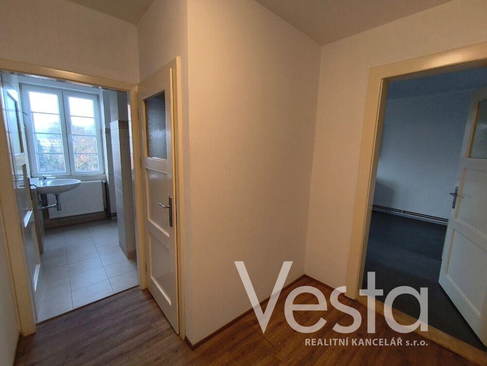 Byt je dispozičně rozdělen na vstupní chodbu, kuchyň s moderní kuchyňskou linkou, pokoj s parketami, koupelnu s vanou a toaletu. Součástí kuchyňské linky je elektrický sporák a digestoř. Společné prostory domu prošly rekonstrukcí. Vytápění a ohřev teplé vody zajišťuje plynový kotel pro celý objekt s vlastními měřidly pro každý byt. Cena pronájmu je uvedena bez měsíčních záloh, které činí cca 2 900 Kč. Elektřina je na vlastní náklady nájemce.
