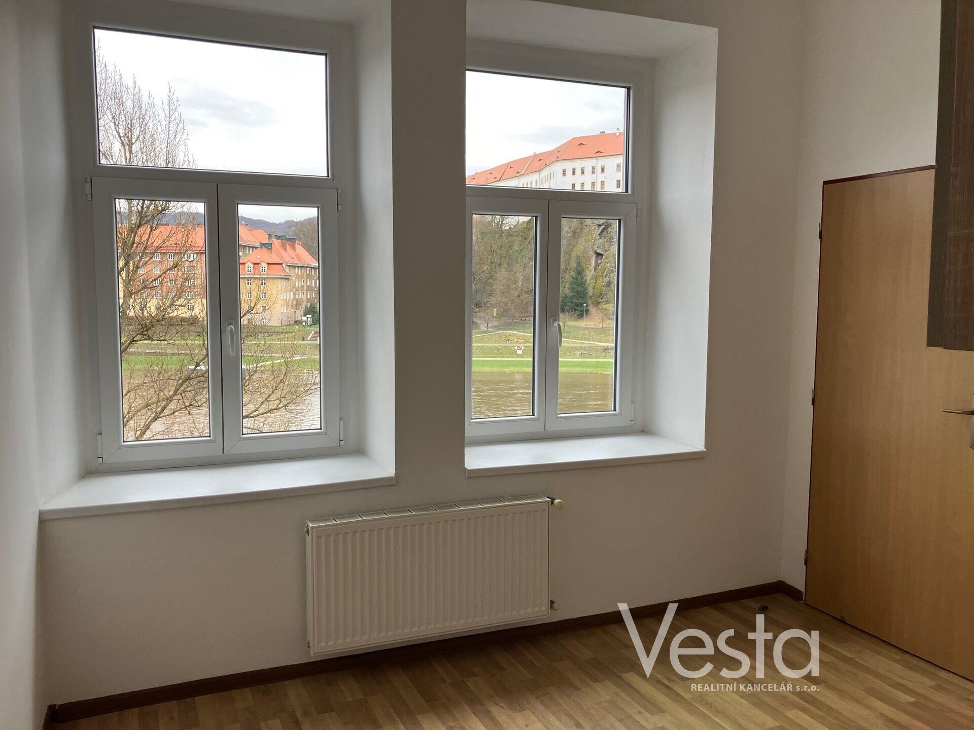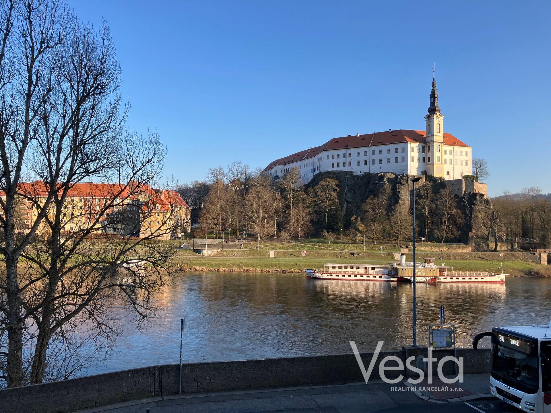 Bytovou jednotku s krásným výhledem na řeku Labe a děčínský zámek tvoří vstupní předsíň, kuchyně s kuchyňskou linkou a elektrickým sporákem, obývací pokoj, menší ložnice, koupelna s vanou a toaletou. Vytápění bytu je zajištěno elektrokotlem, ohřev vody bojlerem. Cena pronájmu je uvedena bez měsíčních záloh na dodávku vody, které činí 400 Kč/osoba a ostatních služeb 200 Kč (osvětlení a úklid spol. prostor). Elektřina na vlastní účet nájemce.