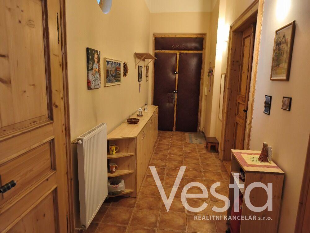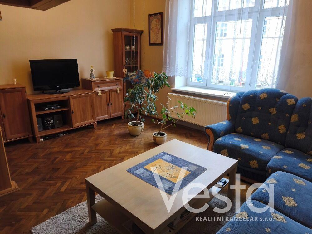 Nabízíme pronájem prostorného bytu o velikosti 2+1 s vestavěným patrem na spaní a podlahové ploše 77 m2, který se nachází ve zvýšeném přízemí cihlového domu v centru města, ulici 28. října. Bytovou jednotku k dlouhodobému pronájmu tvoří vstupní předsíň, kuchyně s kuchyňskou linkou a vestavěnými spotřebiči, odkud je vstup na terasu. Dále obývací pokoj s vestavěným patrem a krbovými kamny, prostorná ložnice a koupelna s vanou i se sprchovým koutem a toaletou. Vytápění bytu a ohřev vody je zajištěn vlastním plynovým kotlem a krbovými kamny v obývacím pokoji. V Bytě jsou krásné dřevěné dveře s obložením. Cena pronájmu je uvedena bez měsíčních záloh (voda a provozní výdaje domu), které pro tři osoby činí cca 1560 Kč. Elektřina a plyn na vlastní účet nájemce. Pěkné bydlení v žádané lokalitě s veškerou občanskou vybaveností v pěším dosahu.